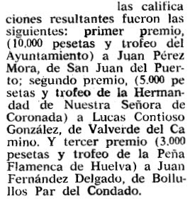 El 2º lo ganó Antonio Rodríguez Rodríguez, entonces un niño y ahora conocido como Antonio “El Jaraqueño” de Aljaraque.